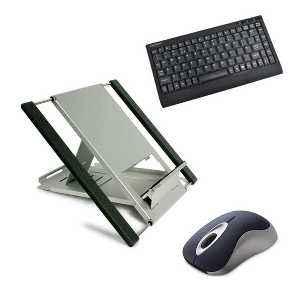 A portable laptop stand, used in conjunction with a separate ergonomic keyboard and mouse, will improve your posture by ensuring that your screen is at the correct height and you are able to maintain a comfortable position while typing and using your mouse.